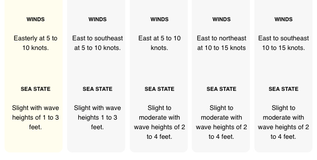 Winds: Today: E 10-20 mph Tonight: E 5-10 mph