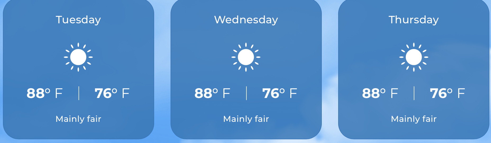 UV: 9.9 VERY HIGH (DOWN from yesterday) Expected temperatures: 72°F to 84°F. Yesterday: H 82.9°F L 74.9°F