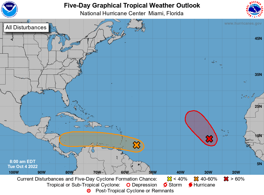 | Tropical Weather Outlook (en Español*) 800 AM EDT Tue Oct 4 2022 1205 UTC Tue Oct 4 2022 | |