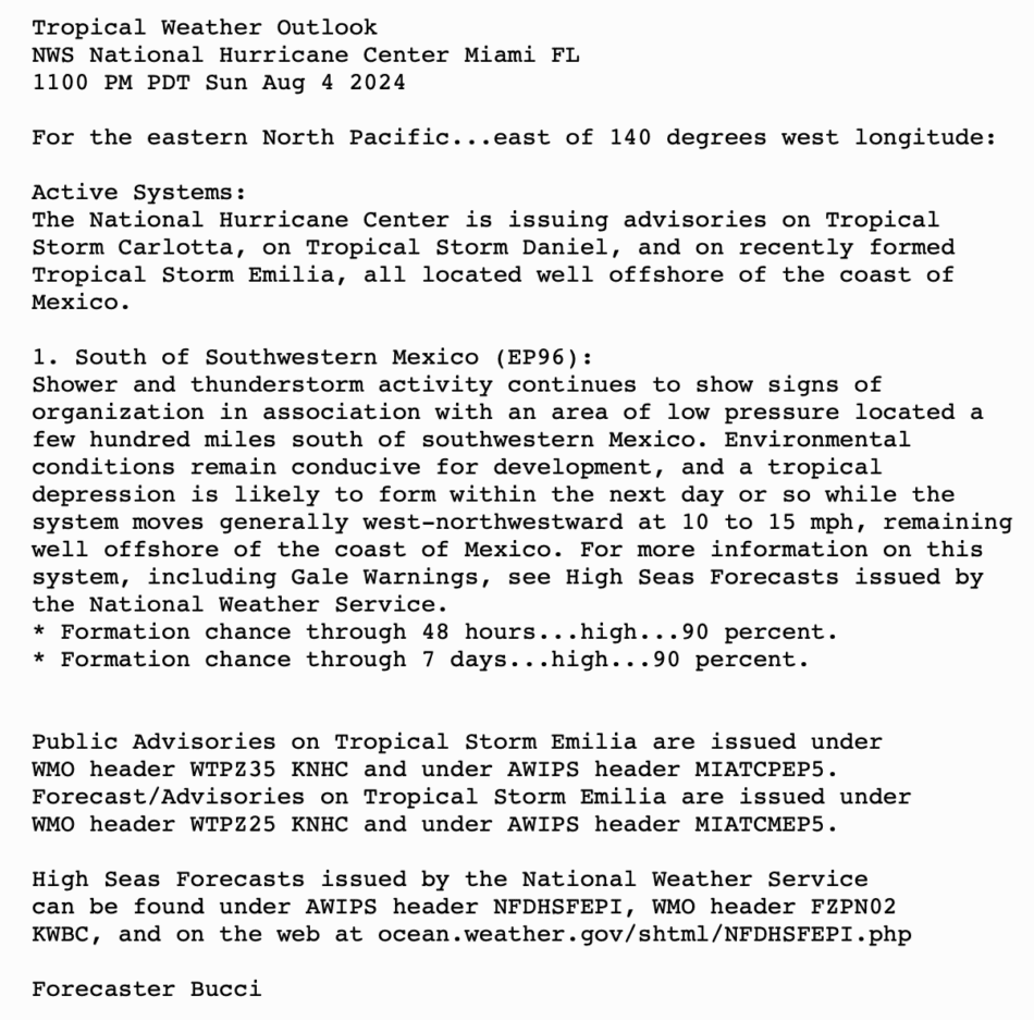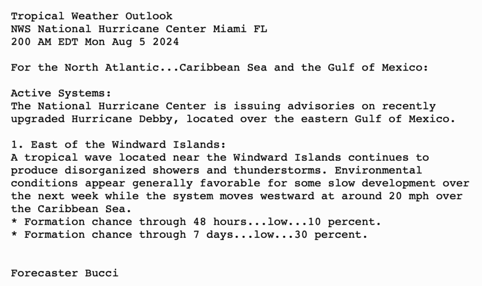 | Tropical Weather Outlook Text | Tropical Weather Discussion |