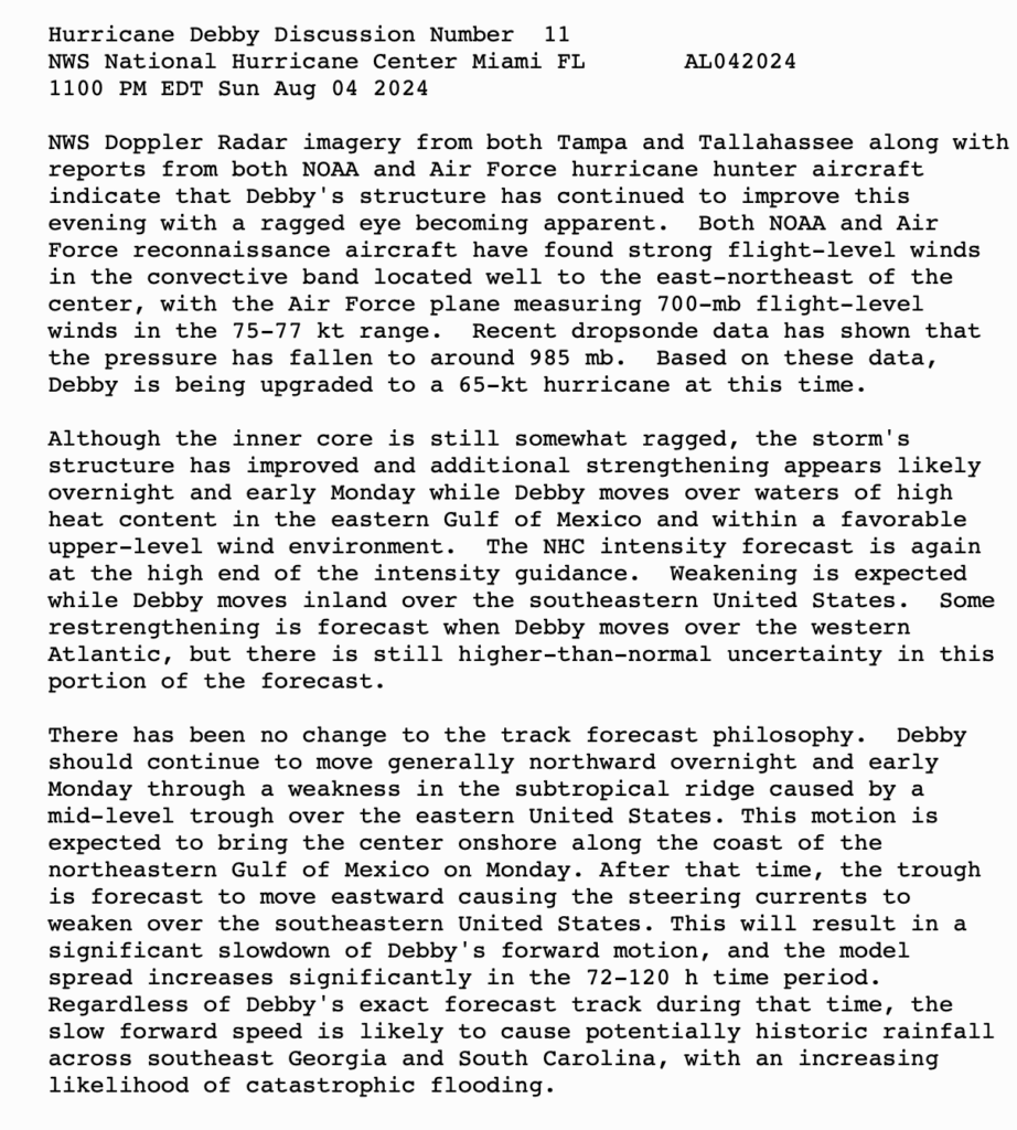 DEBBY NEARING LANDFALL IN THE FLORIDA BIG BEND… …400 AM EDT POSITION UPDATE.