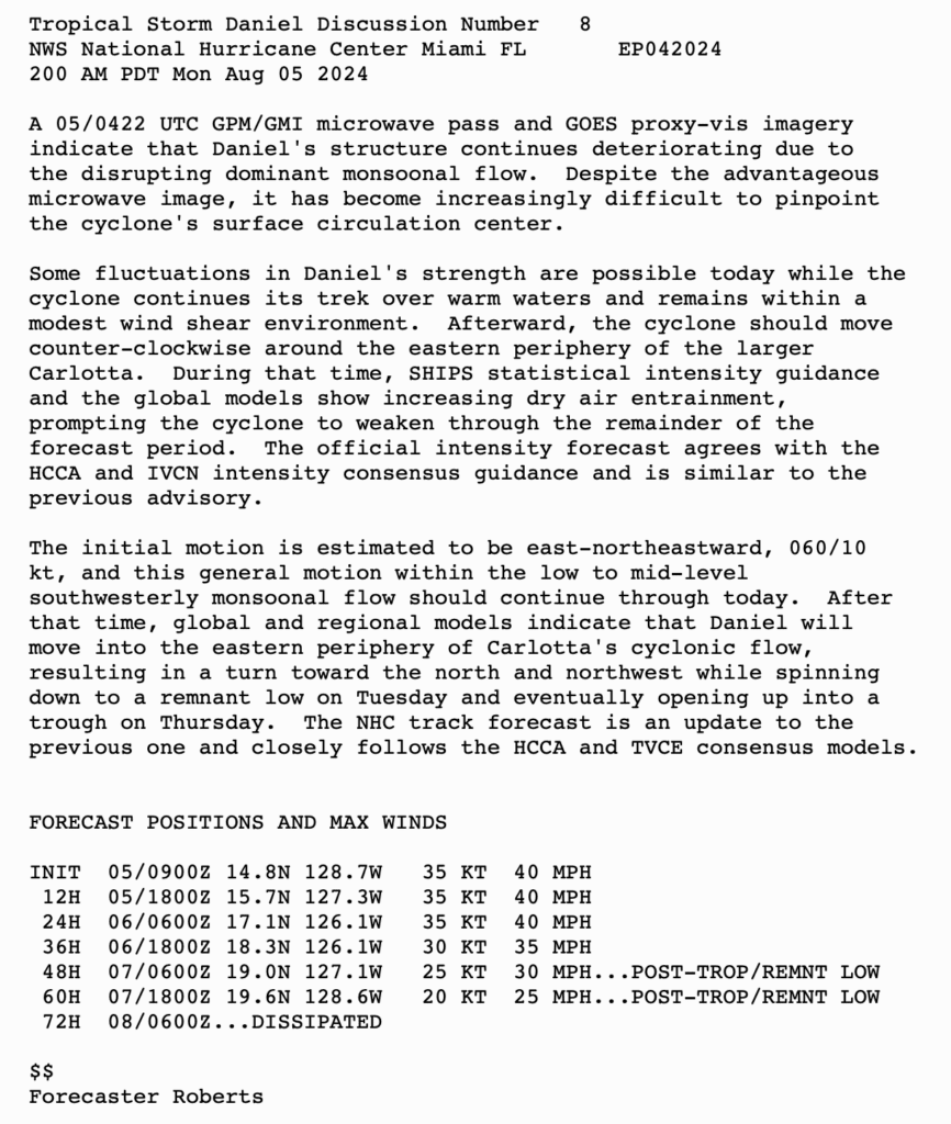 POORLY DEFINED DANIEL EXPECTED TO WEAKEN SOON