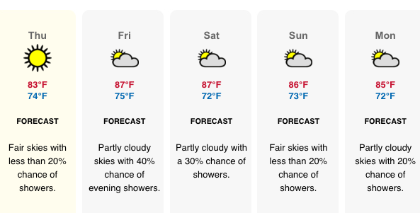 Temperature: Today’s expected temperatures – 74°F to 84°F. Yesterday: H 83.4°F L 66.5°F