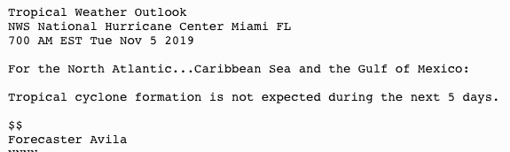 5 Nov 2019 Weather in Cayman & Tropical Report