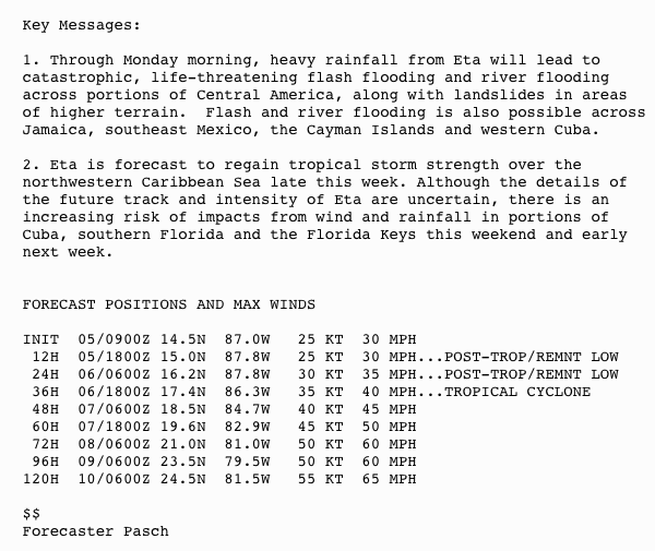 TD ETA CONTINUES TO PRODUCE HEAVY RAINS AND LIFE-THREATENING FLOODING OVER PORTIONS OF CENTRAL AMERICA