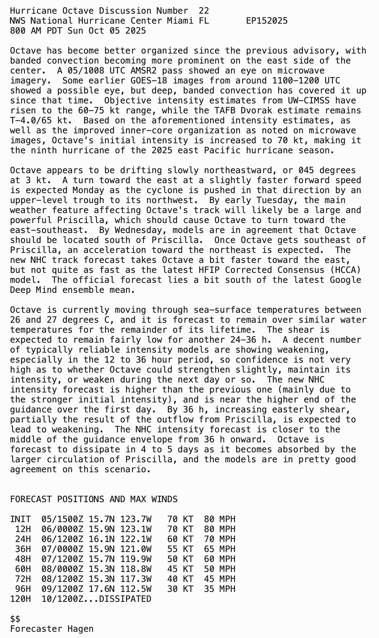 OCTAVE STRENGTHENS AND BECOMES THE NINTH HURRICANE OF THE 2025 EAST PACIFIC HURRICANE SEASON