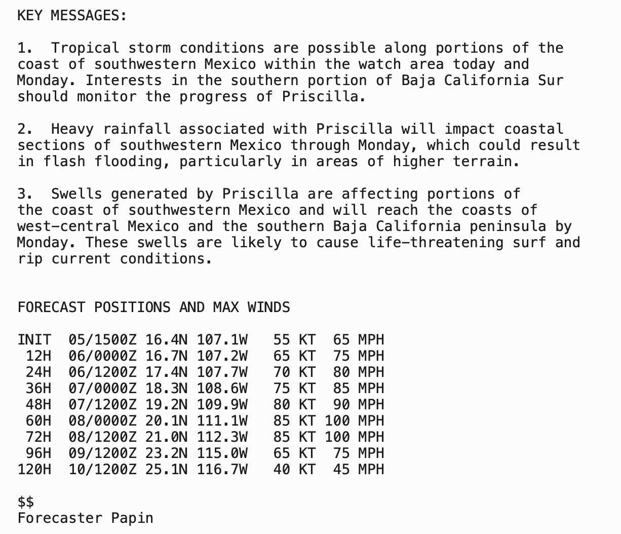 PRISCILLA EXPECTED TO BECOME A LARGE HURRICANE IN THE NEXT DAY OR SO