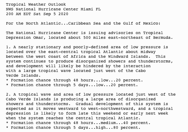 | Tropical Weather Outlook (en Español*) 800 AM EDT Sat Sep 5 2020 |