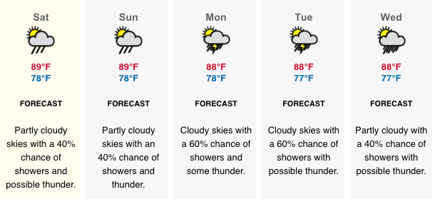 Temperature: Today’s expected temperatures – 81° to 93°F. Yesterday: H 92.6°F L 80.1°F