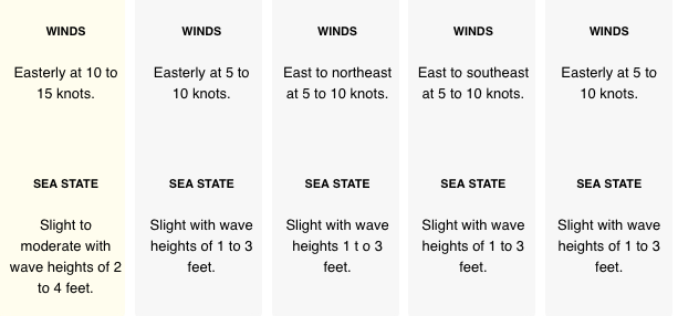 Winds: Today: E 10-20 mph Tonight: ENE 10-15mph