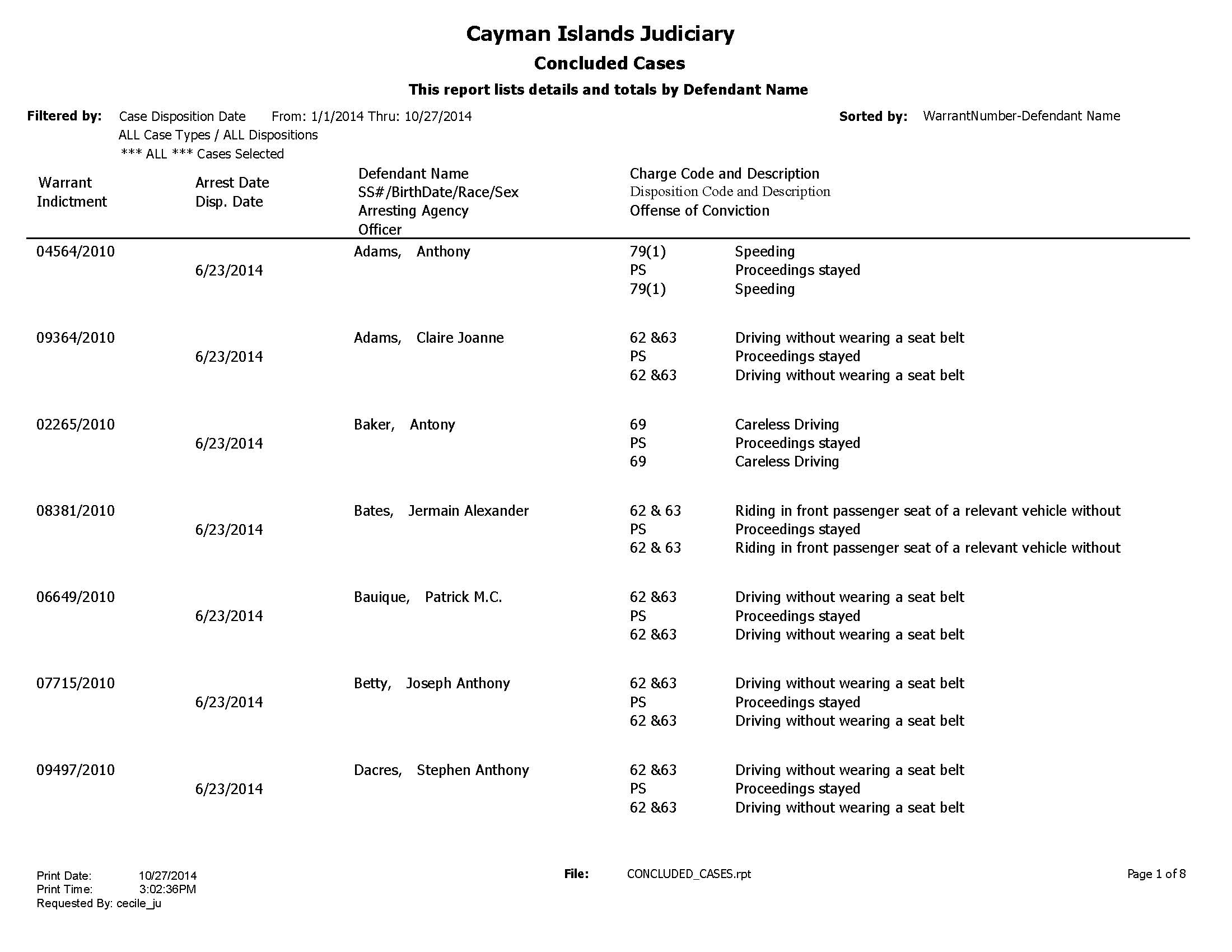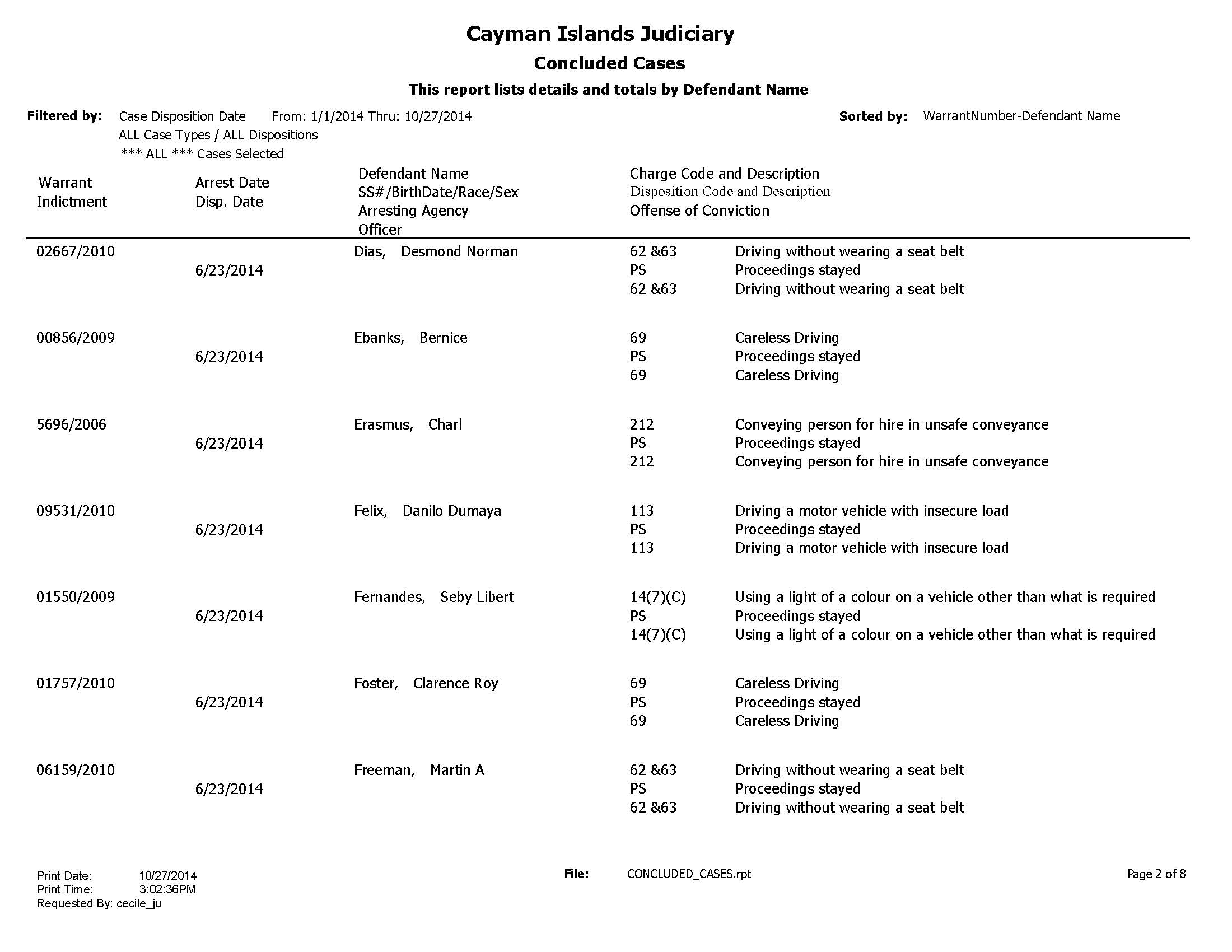 In January 2011 the RCIPS issued a list revealing the nature of crimes involved in over four dozen Summary Court/criminal procedure code cases that were not prosecuted. The RCIPS said this was a result of the statute of limitations expiring, as well as cases not making it to court on time. The list represents the time period between August 2005 and August 2010.