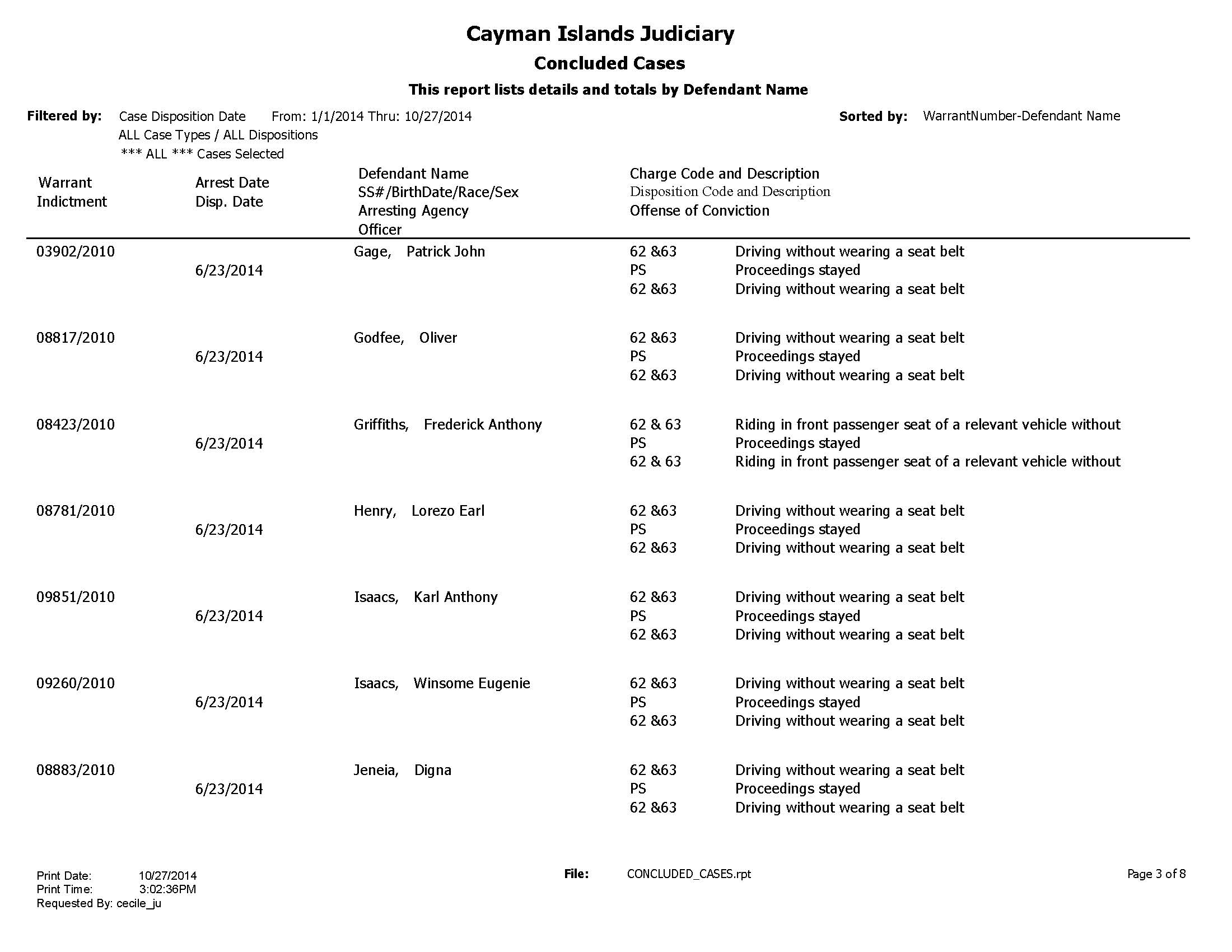 In a Freedom of Information Request by the then “Caymanian Compass” the document showed “three cases of assault occasioning actual bodily harm did not proceed because in one of the cases the accused was not interviewed by the investigating officer, while the other one was statute barred because charges were laid late and the file had expired. No reason was stated in the crime report for why the third assault case was barred.”