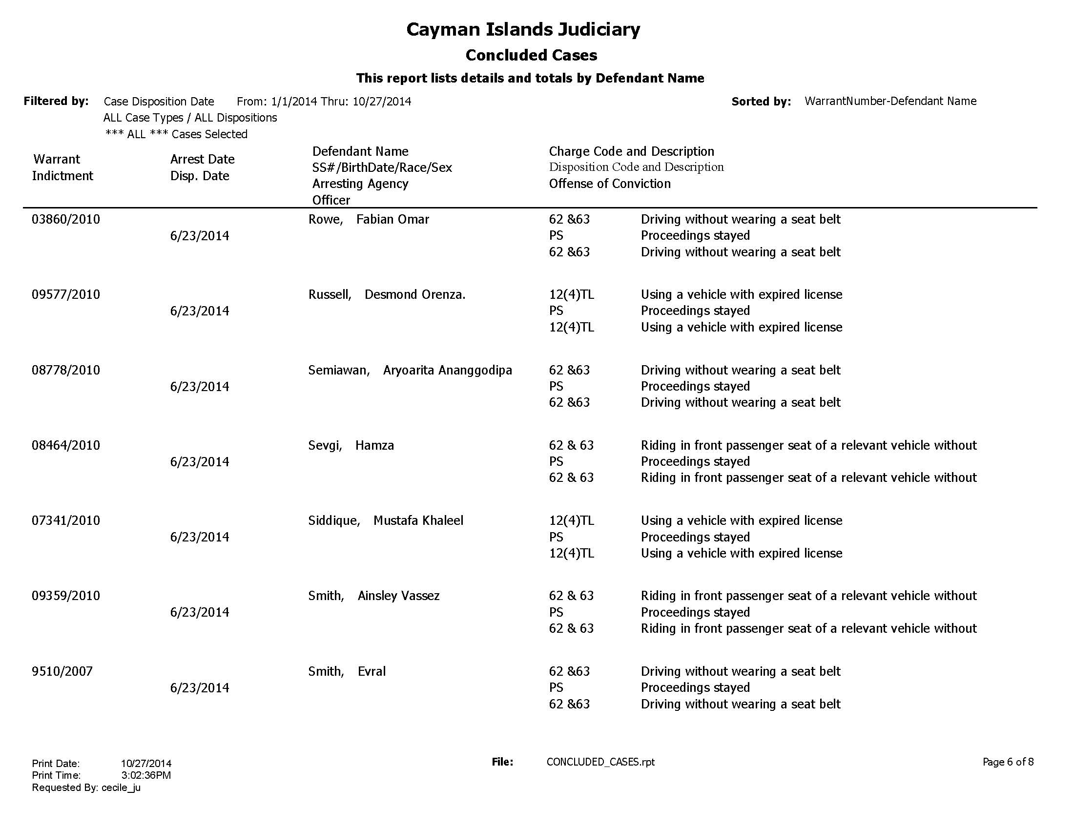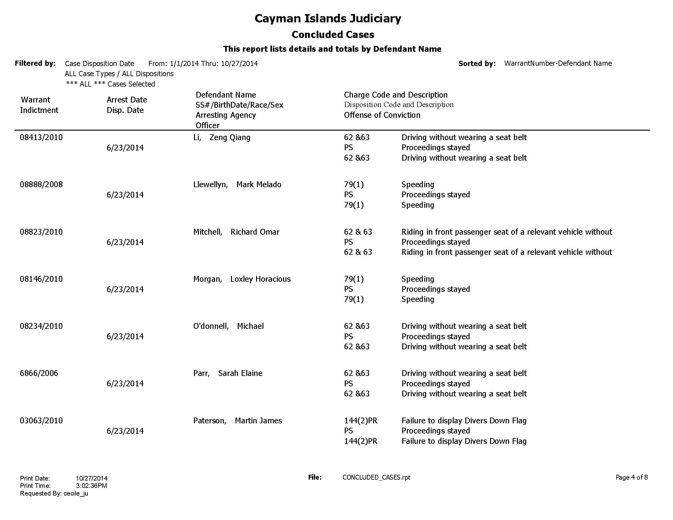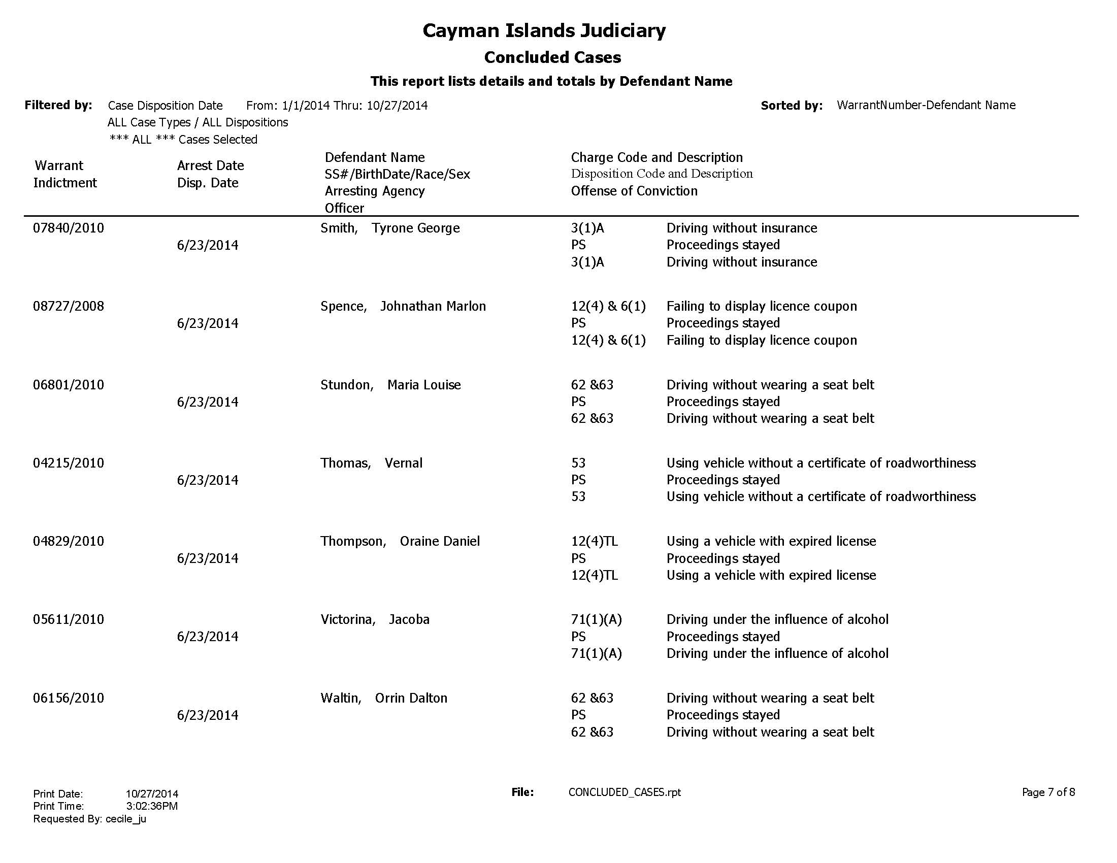 The 50 cases of mostly traffic offences include such serious offences as driving while intoxicated and minor offences such as no divers down flag.