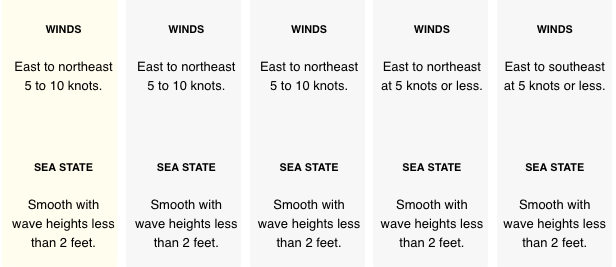 Winds: Today: E 5-10 mph Tonight: NE 5-10 mp