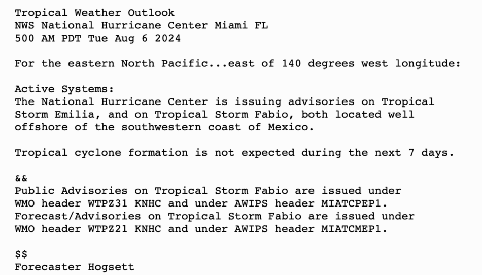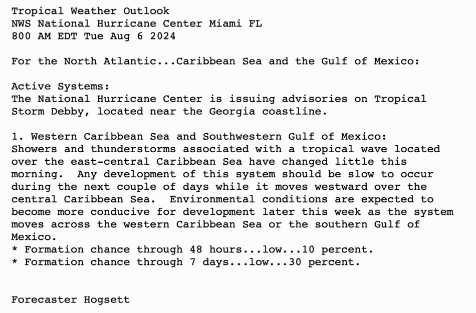 | Tropical Weather Outlook Text | Tropical Weather Discussion |