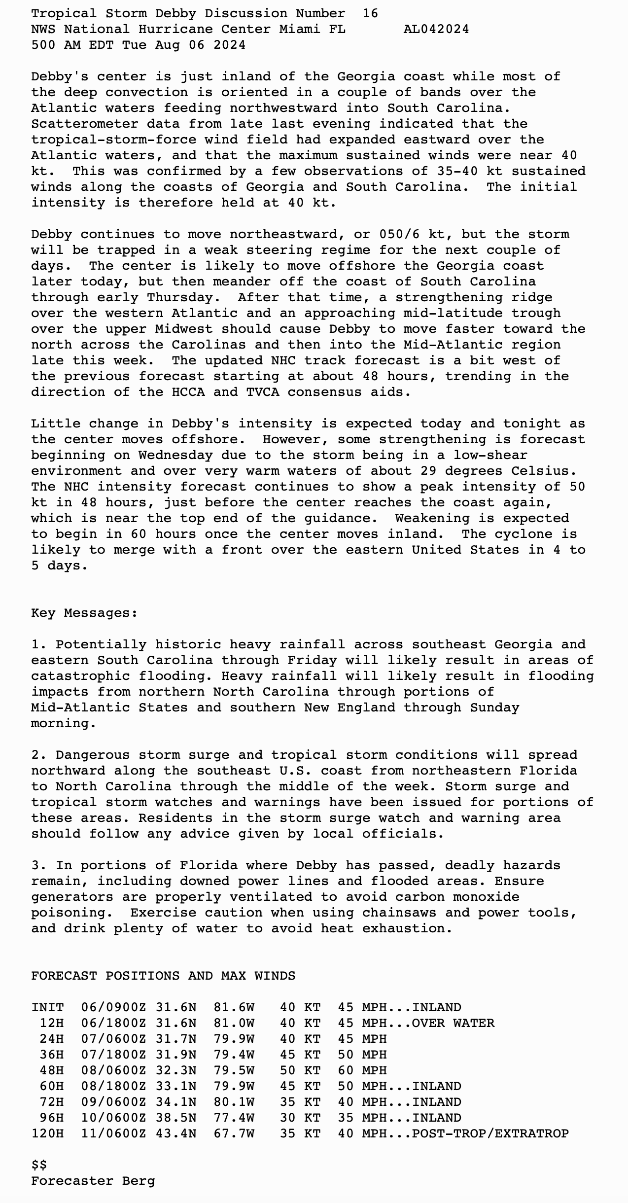 DEBBY EXPECTED TO MOVE OFFSHORE OF THE GEORGIA COAST LATER TODAY… …MAJOR FLOOD THREAT OVER PORTIONS OF GEORGIA, SOUTH CAROLINA, AND NORTH CAROLINA OVER THE NEXT FEW DAYS