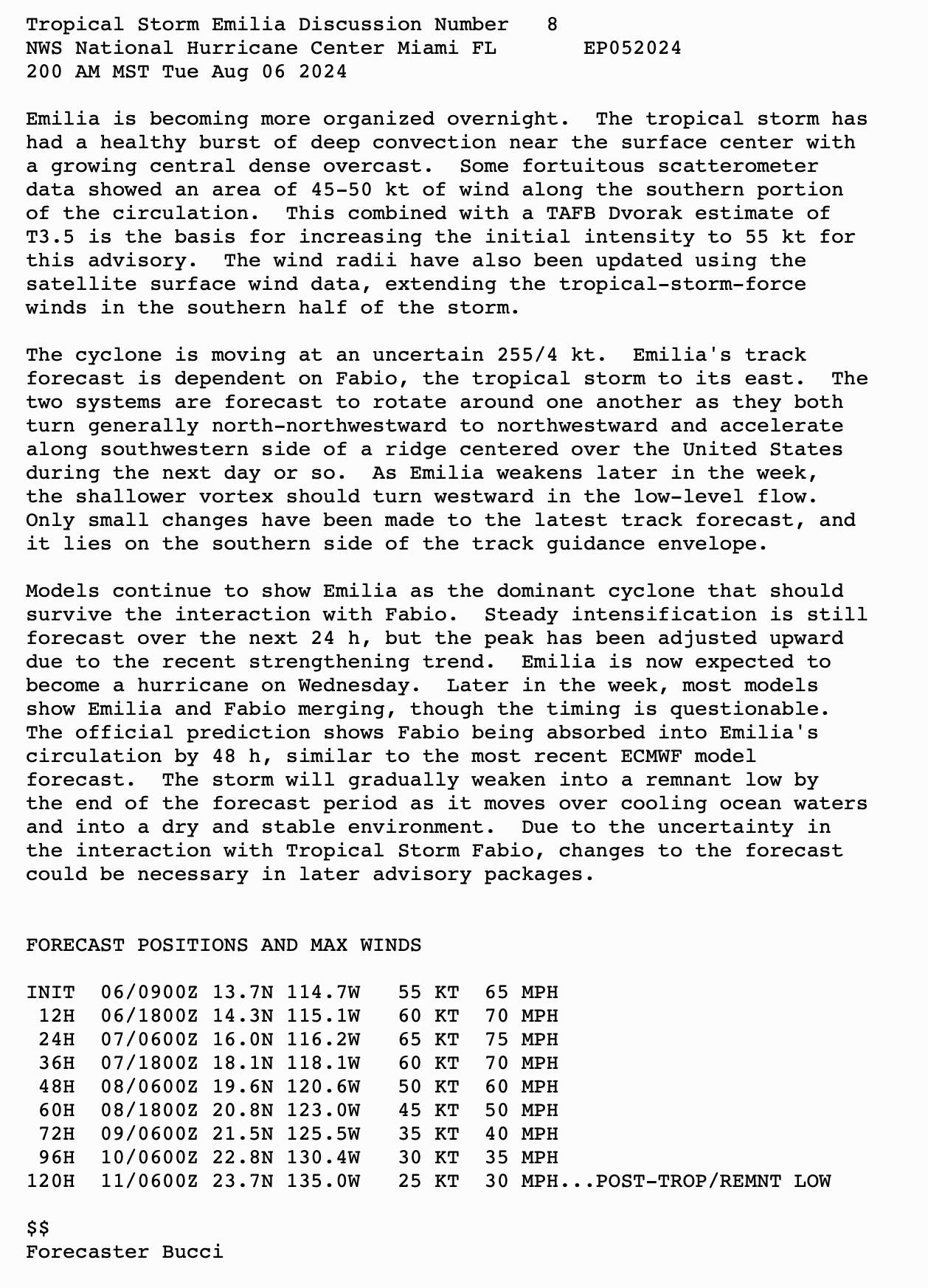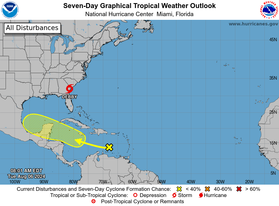 6 Aug Weather in Cayman & Tropical Report, 1 TS, 1 Dist.