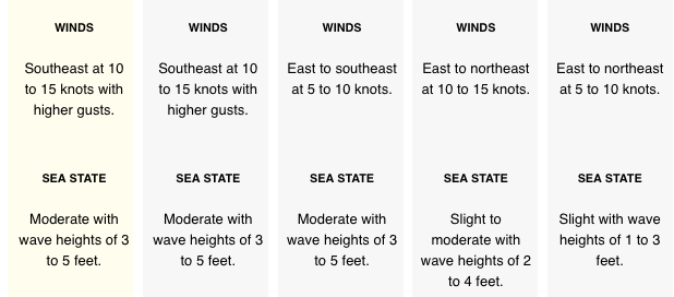 Winds: Today: SE 15-25 mph. Tonight: SSE 10-20 mph