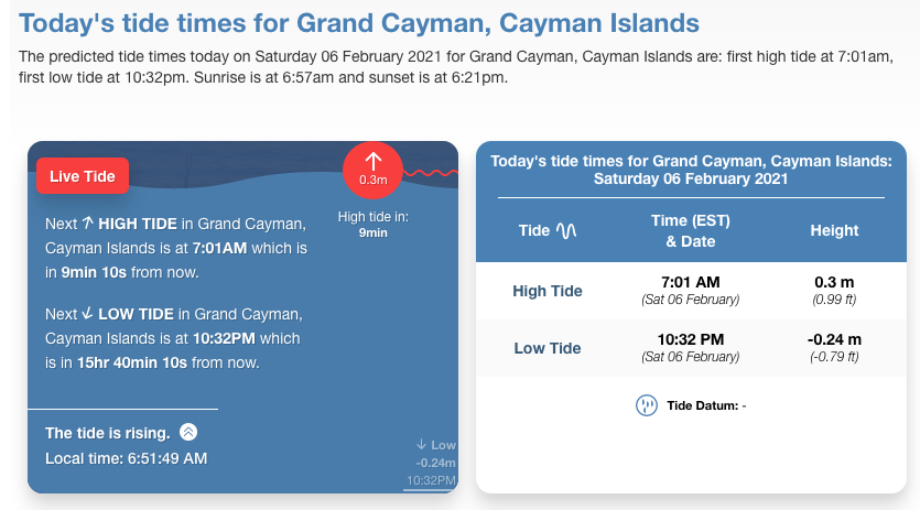 Grand Cayman Tides SAT 6 FEB 2021