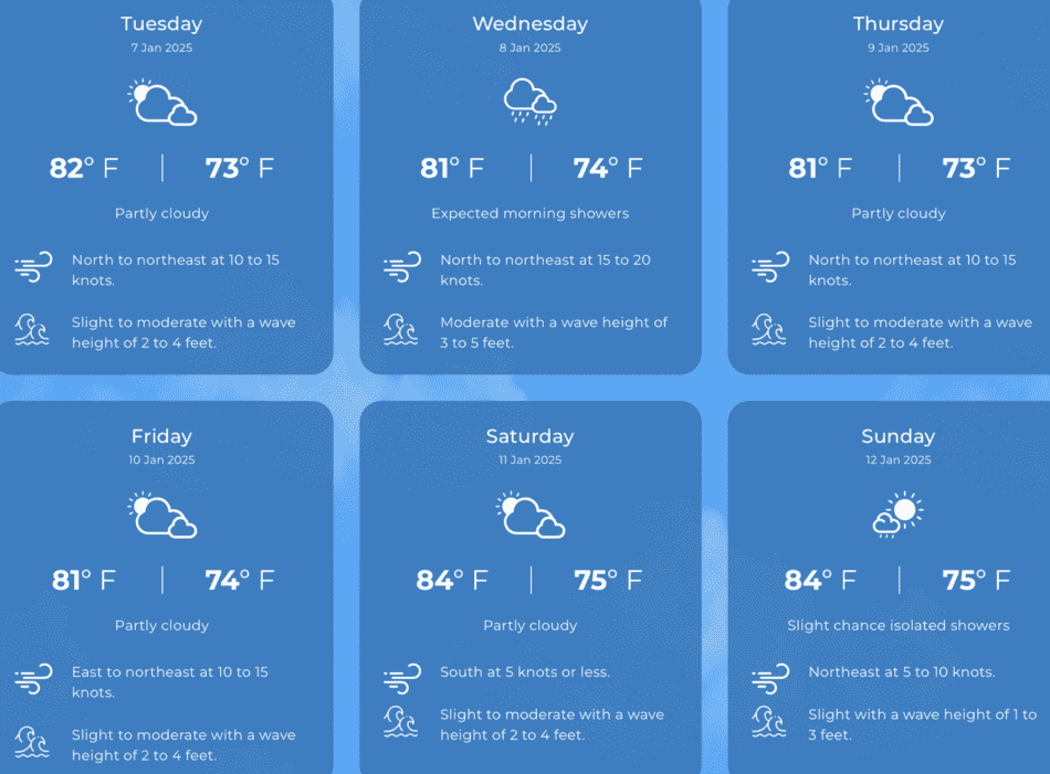 Sea: Moderate with a wave height of 3 to 5 feet.