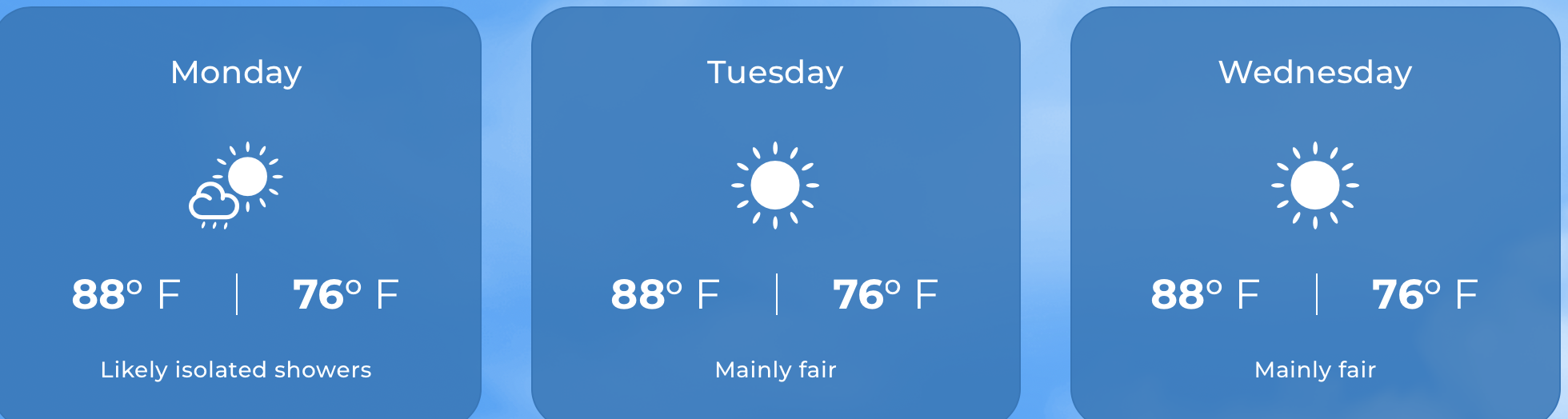UV:10.0 VERY HIGH (UP from yesterday) Expected temperatures: 77°F to 86°F. Yesterday: H 85.4°F L 75.3°F