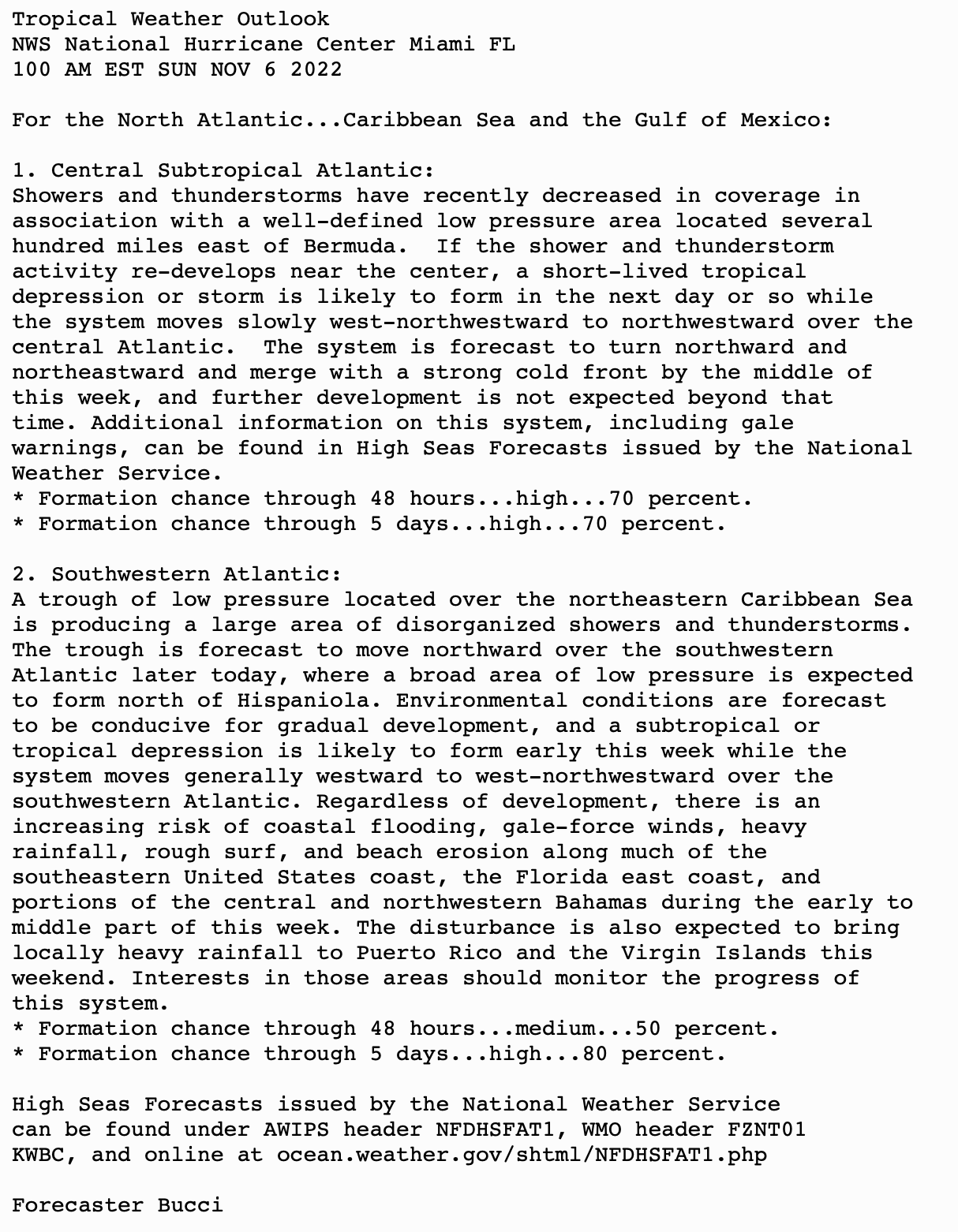 | Tropical Weather Outlook (en Español*) 800 AM EDT Sun Nov 6 2022 1205 UTC Sun Nov 6 2022 | |