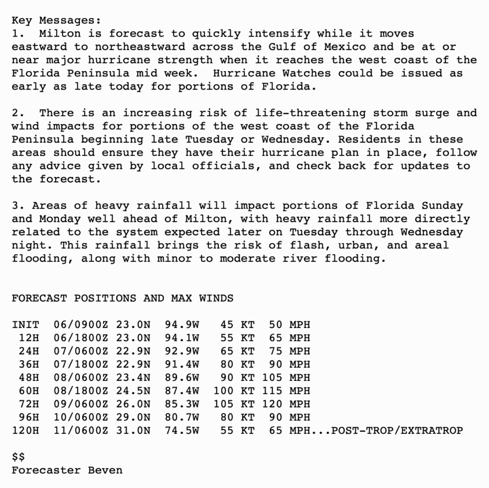 NOAA HURRICANE HUNTER AIRCRAFT FINDS A STRONGER MILTON… …RISK OF LIFE-THREATENING IMPACTS INCREASING FOR PORTIONS OF THE FLORIDA WEST COAST
