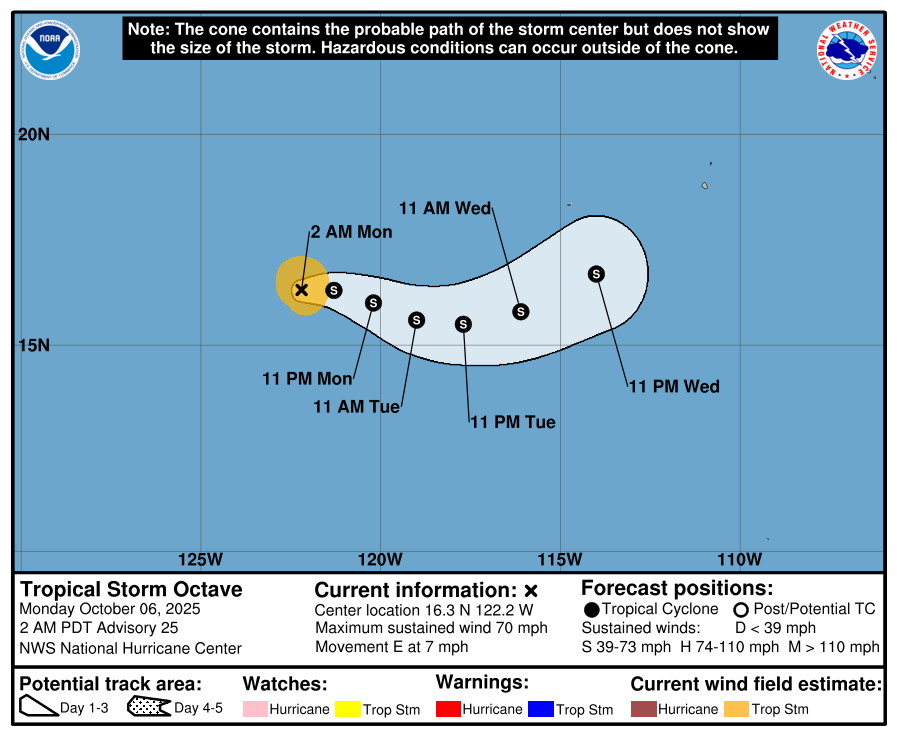 OCTAVE SLIGHTLY WEAKENS WHILE HEADING EASTWARD