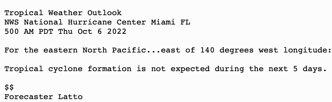 | Tropical Weather Outlook 500 AM PDT Thu Oct 6 2022 1005 UTC Thu Oct 6 2022 | |