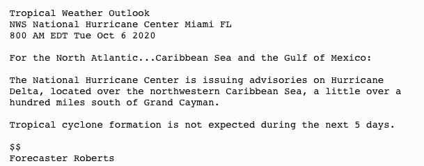 6 Oct Weather in Cayman & Tropical Report, 1 HC