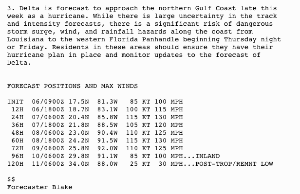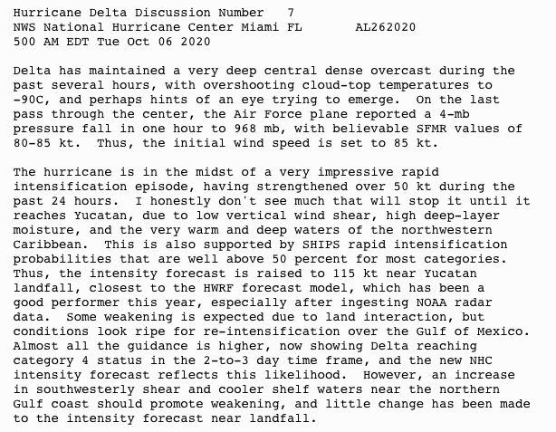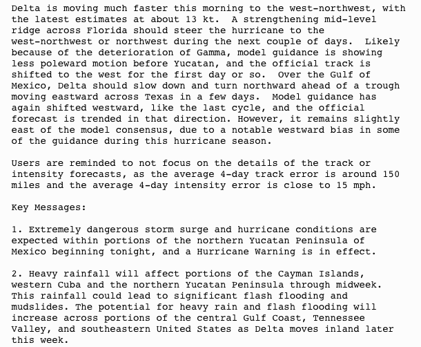 NOAA HURRICANE HUNTER AIRCRAFT REPORTS THAT DELTA CONTINUES TO RAPIDLY STRENGTHEN… …EXTREMELY DANGEROUS HURRICANE CONDITIONS EXPECTED FOR THE NORTHEASTERN YUCATAN PENINSULA STARTING EARLY WEDNESDAY