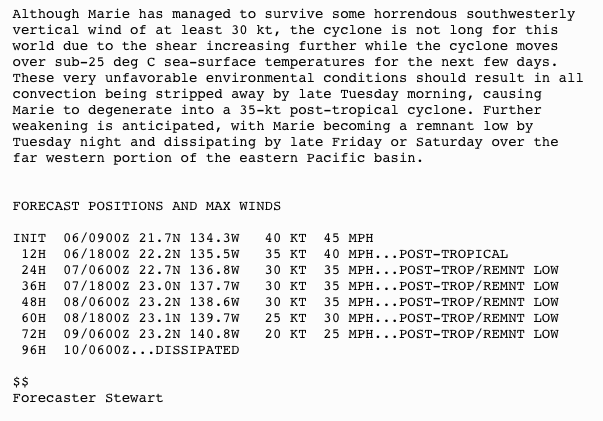 TENACIOUS MARIE REFUSES TO WEAKEN… …STILL EXPECTED TO BECOME A REMNANT LOW ON TUESDAY