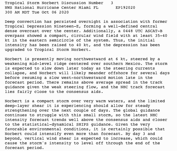 TROPICAL DEPRESSION NINETEEN-E STRENGTHENS INTO TROPICAL STORM NORBERT