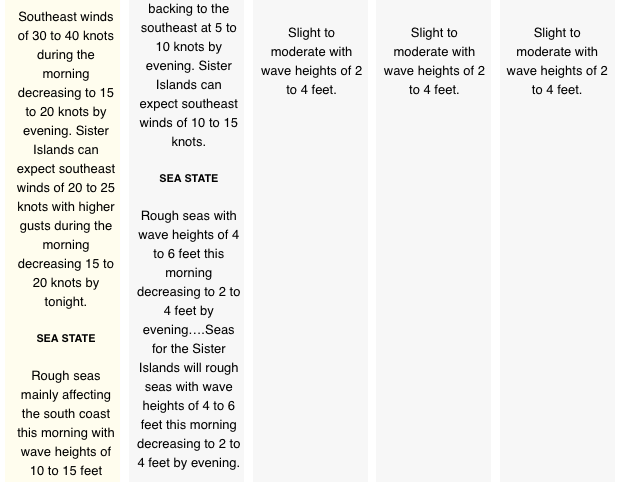 Winds: SE 25-40 mph Tonight: SSE 15-25 mph,