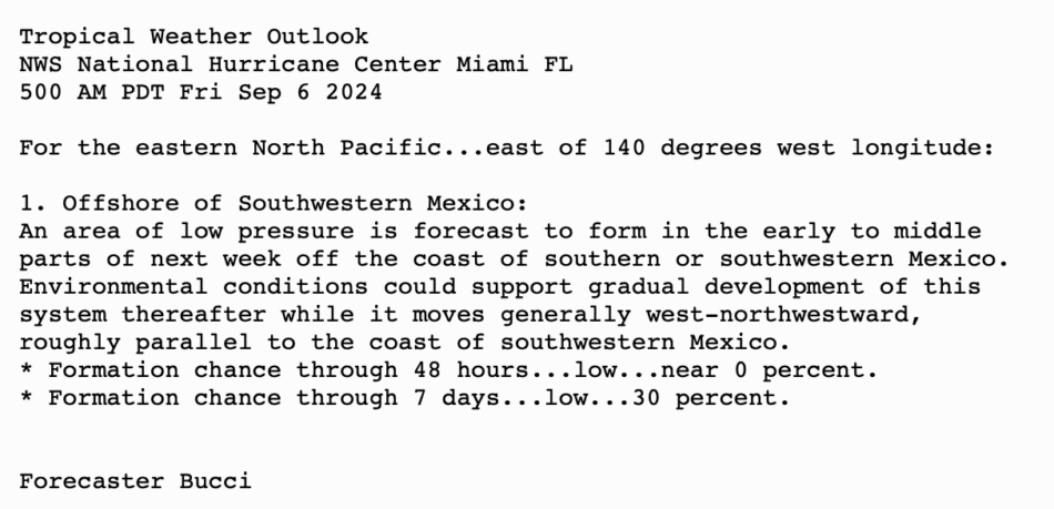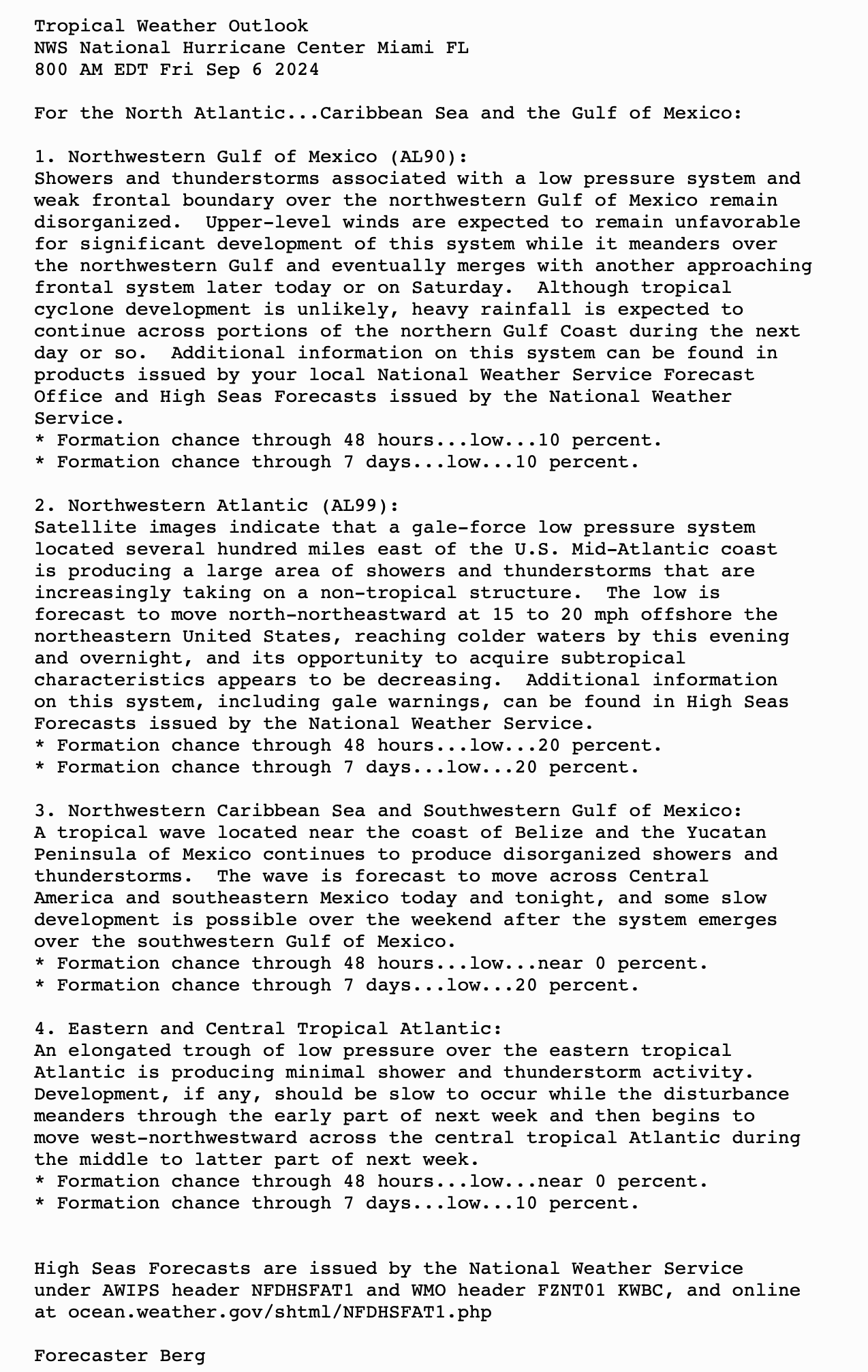 | Tropical Weather Outlook Text | Tropical Weather Discussion |