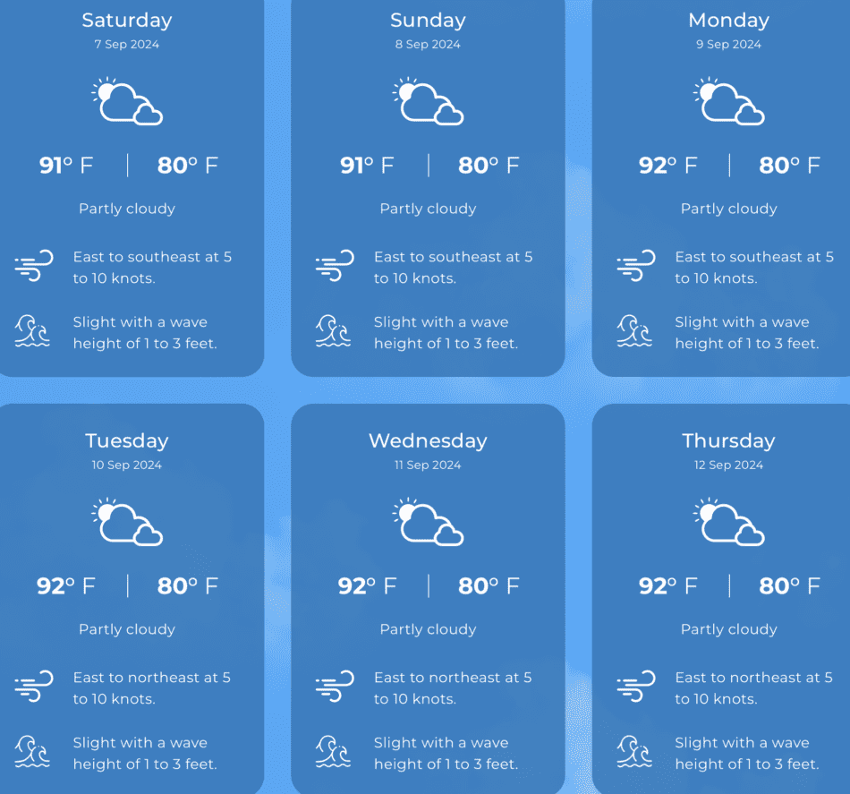 Sea: Slight to moderate with a wave height of 2 to 4 feet.