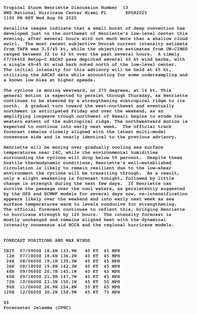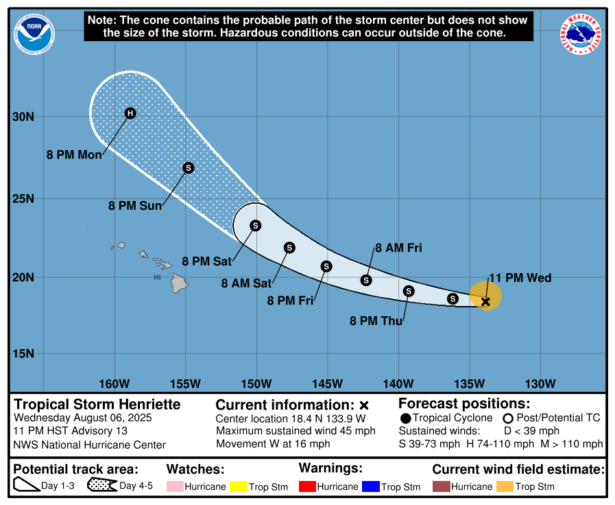 HENRIETTE MAINTAINS ITS STRENGTH WELL TO THE EAST OF HAWAII
