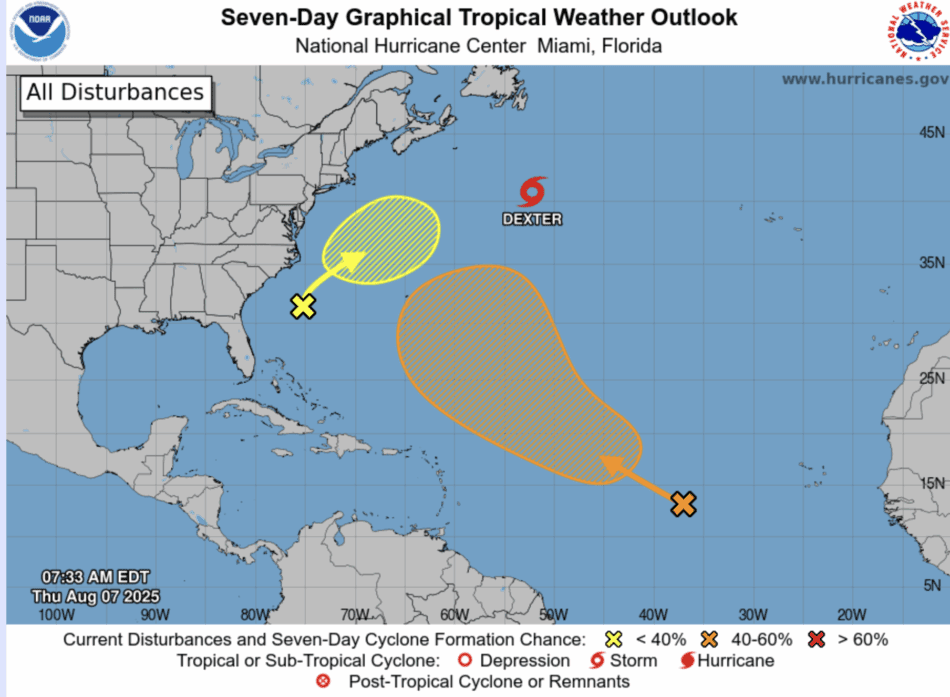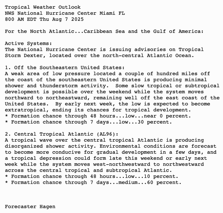| Tropical Weather Outlook 800 AM EDT Thu 7 Aug 2025 1205 UTC Thu 7 Aug 2025 | |