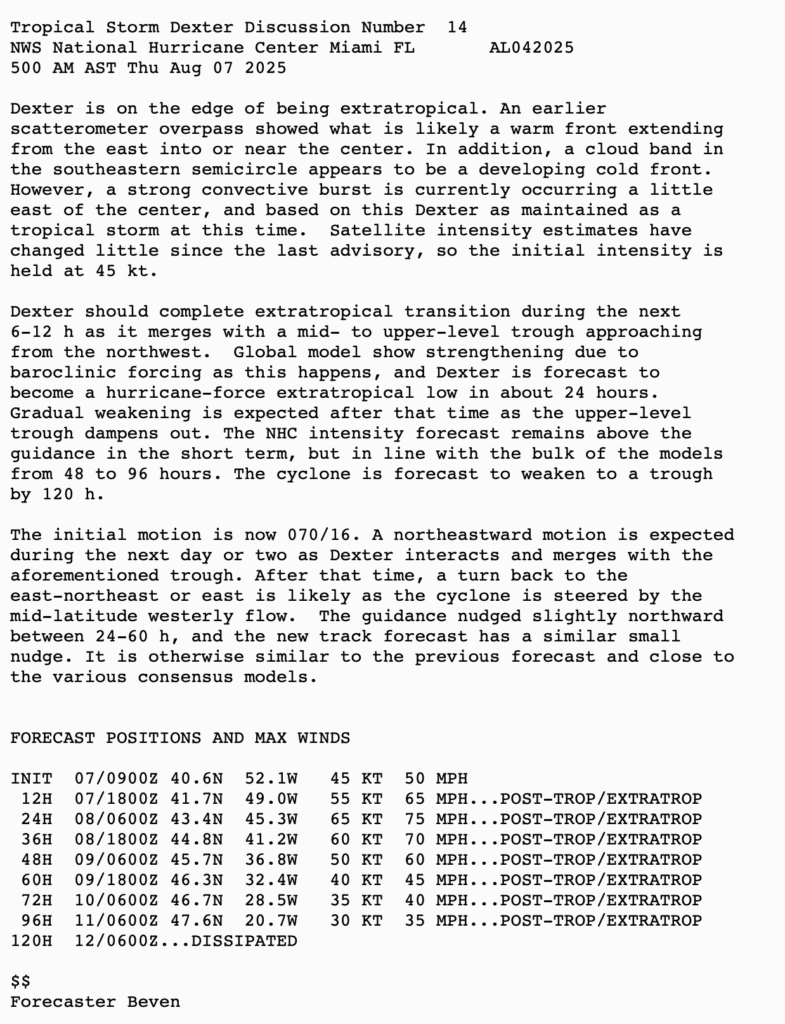 .DEXTER EXPECTED TO BECOME A STRONG EXTRATROPICAL LOW OVER THE NORTH ATLANTIC DURING THE NEXT SEVERAL HOURS