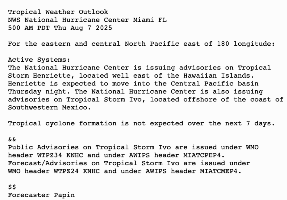 | Tropical Weather Outlook 500 AM PDT Thu 7 Aug 2025 1005 UTC Thu 7 Aug 2025 | |