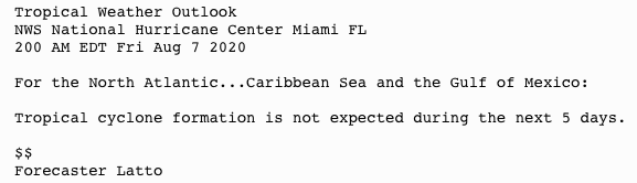| Tropical Weather Outlook (en Español*) 800 AM EDT Fri Aug 7 2020 |