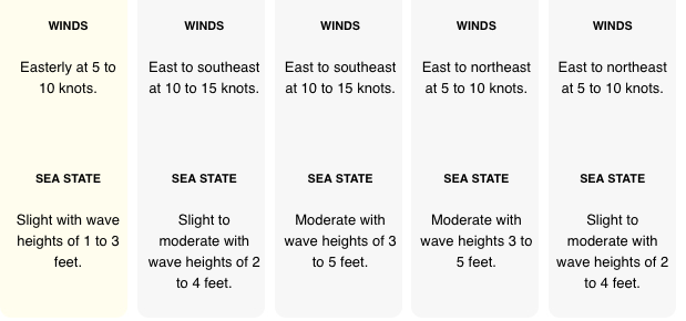 Winds: Today: ENE 10-20 mph Tonight: E 10-15 mph