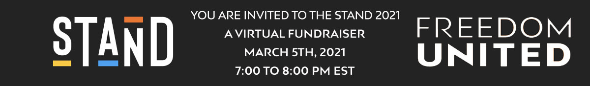 | Give online before THE STAND begins here. You can alsoset up your own fundraising page to send to friends and family.Give via check. Please make checks payable to “Freedom United” and add “THE STAND” in the memo line. Checks can be mailed to Freedom United 4501 Atlantic Blvd, Suite 110, Raleigh NC 27604.Give via Donor Advised Fund. If you have questions or need additional information in order to give through a DAF, you can contact us here. We are so grateful for your support and can’t wait for you to join us next Friday! In solidarity, Joe and the Freedom United team |