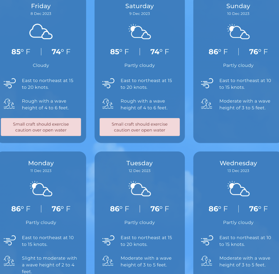 IMPORTANT NOTICEThe times reflected in the tidal table for Grand Cayman are predictions valid as references for sports fishing in areas near the coast of Grand Cayman. THEY ARE NOT SUITABLE FOR NAVIGATION. Remember that to practice any activity at sea like diving, windsurfing and fishing from a boat or underwater fishing should always be consulted with the official tide tables of the port of Grand Cayman.
