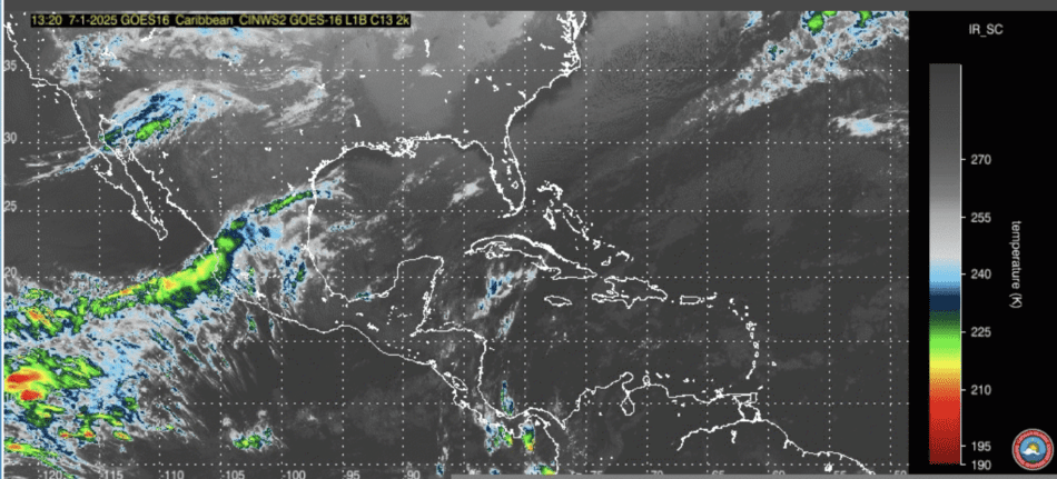 A cold-front across the Yucatan is expected to move just west of our area by tomorrow morning. Isolated showers associated with this system is likely to impact the Cayman Islands overnight into early morning, as the frontal boundary becomes stationary and gradually dissipates.