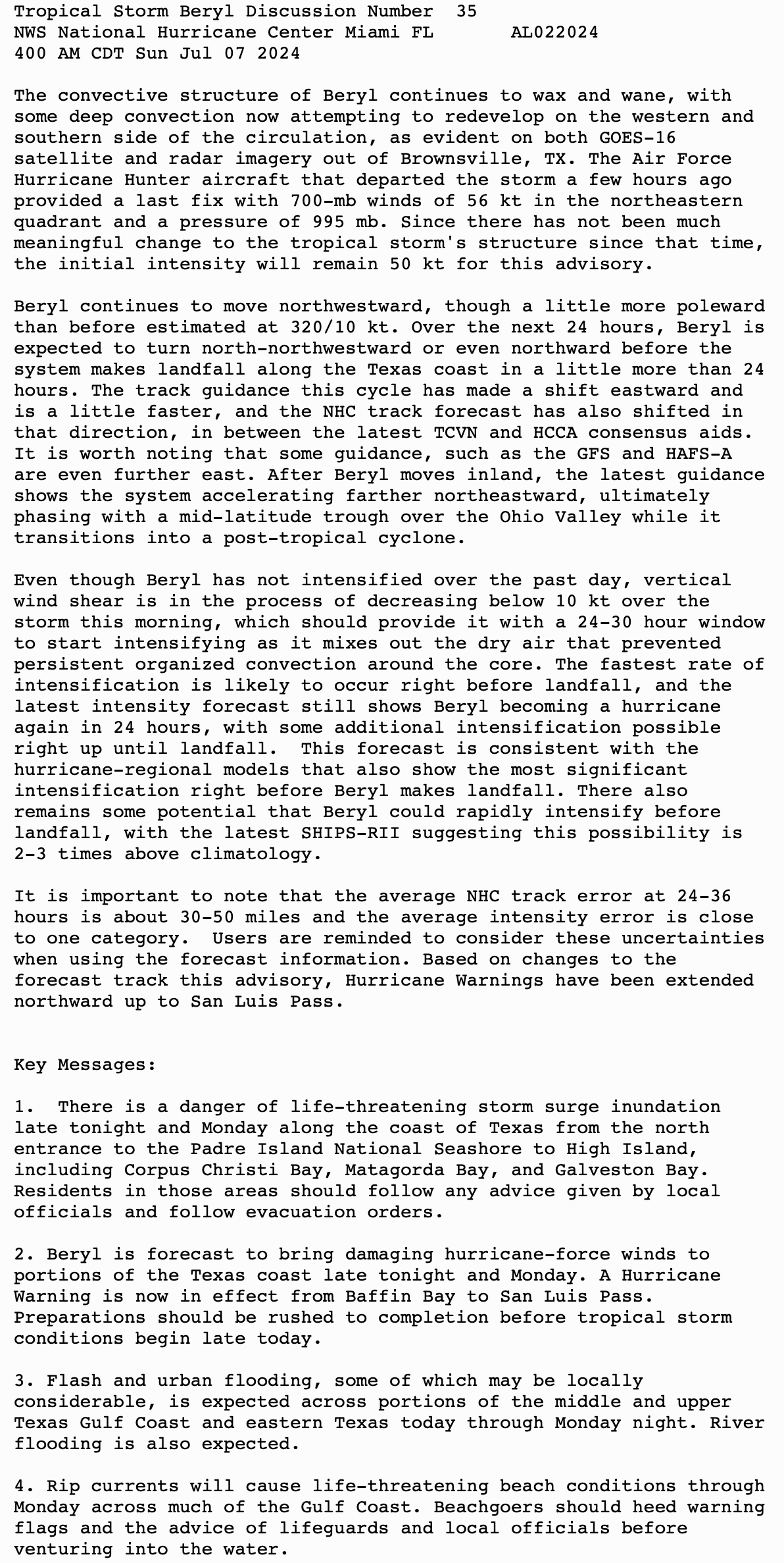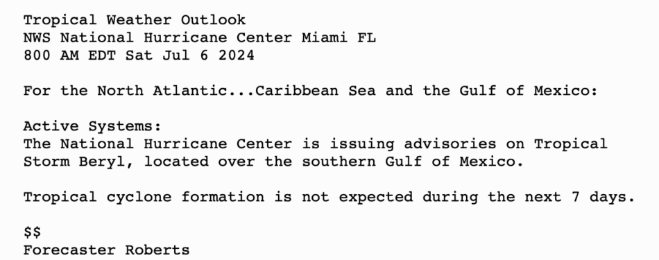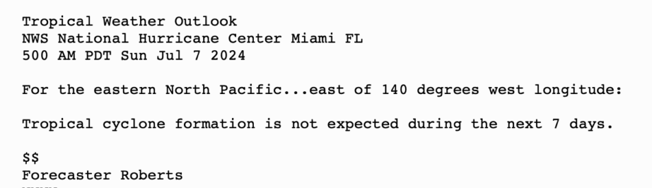 500 AM PDT Sun 7 July 2024  Tropical Weather Discussion