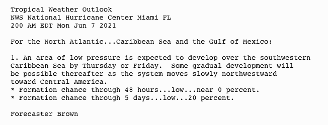 7 Jun Weather in Cayman & Tropical Report, 1 Dist.