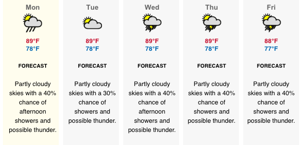 UV: 11.0 EXTREME (Same as yesterday) Expected temperatures – 78°F to 90°F. Yesterday: H 90.6°F  L 78.7°F