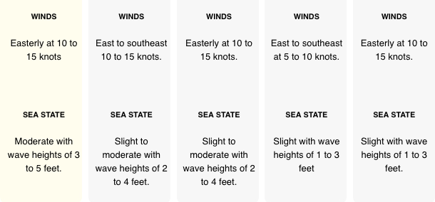 Winds: Today: E 10-20 mph Tonight: E 10-20 mph