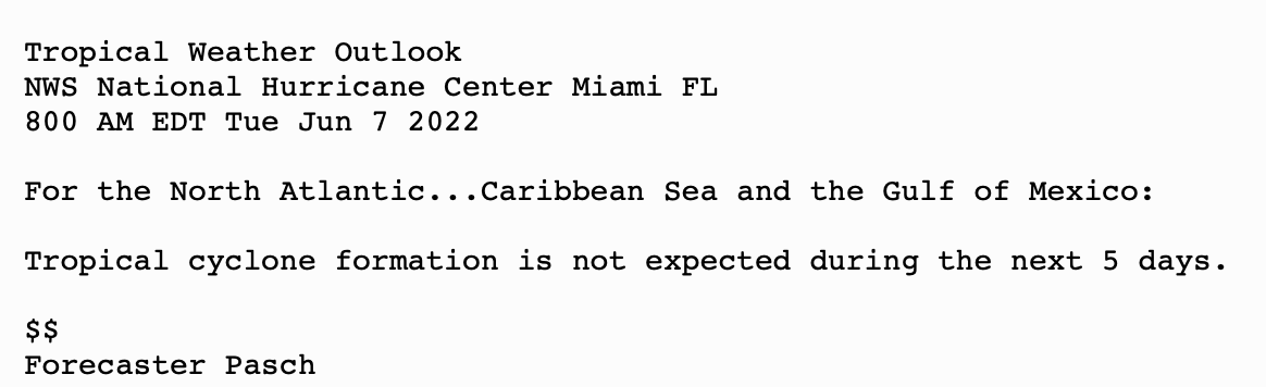 | Tropical Weather Outlook (en Español*) 800 AM EDT Tue June 7 2022 1205 UTC Tue June 7 2022 | |